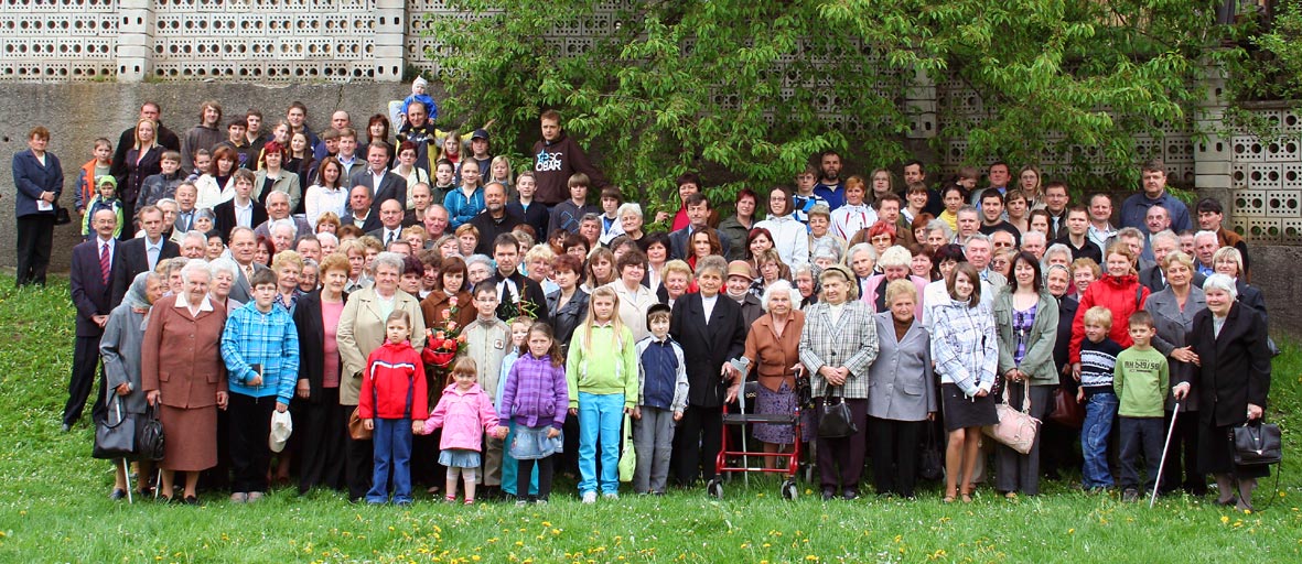 Jste zde:Galerie / Starší fotografie ze sborového života / Loučení br. faráře se sborem / Společná fotografie javornického sboru s rodinou br. faráře Josefa Hurty