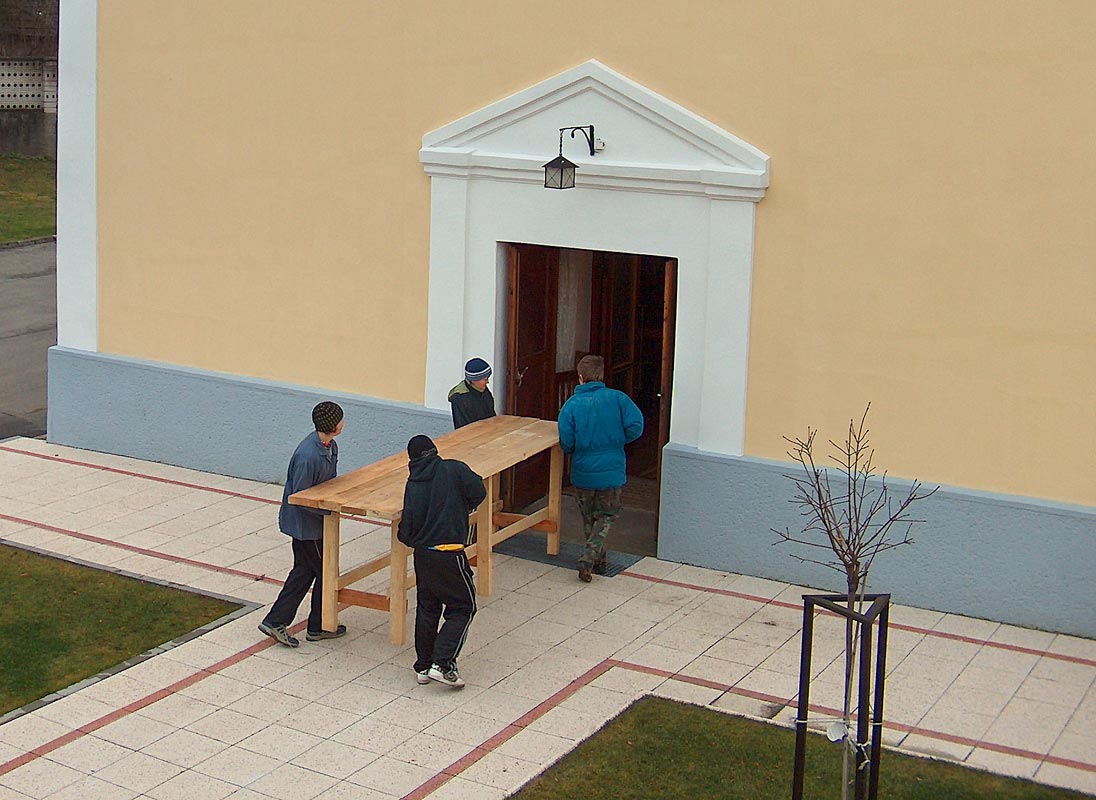 Jste zde:Galerie / Starší fotografie ze sborového života / Dětská vánoční slavnost 2009 / Stavba pódia pro vánoční divadlo
